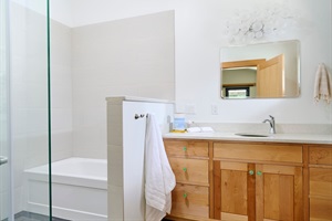 The Bellingham Meadow House is a one-of-a-kind modern cabin tucked in a private sunlit garden setting just a stone's throw from Lake Samish. Enclosed by a canopy of mature evergreens, it offers seamless indoor-outdoor living with a covered hot tub, a fully stocked kitchen, and no shortage of picturesque seating areas to sip your morning coffee. There is space for all your work and recreation needs- including a well-lit office nook and plenty of parking. The house is bright, airy, and pristine. Built with wood sourced from the property, it has all the finishes: radiant floor heating, a private master patio with a hot tub, custom figured maple cabinets, a king sized tempurpedic bed, a walk-in shower with soaking tub, tall windows for maximum sunlight, and step-free access.